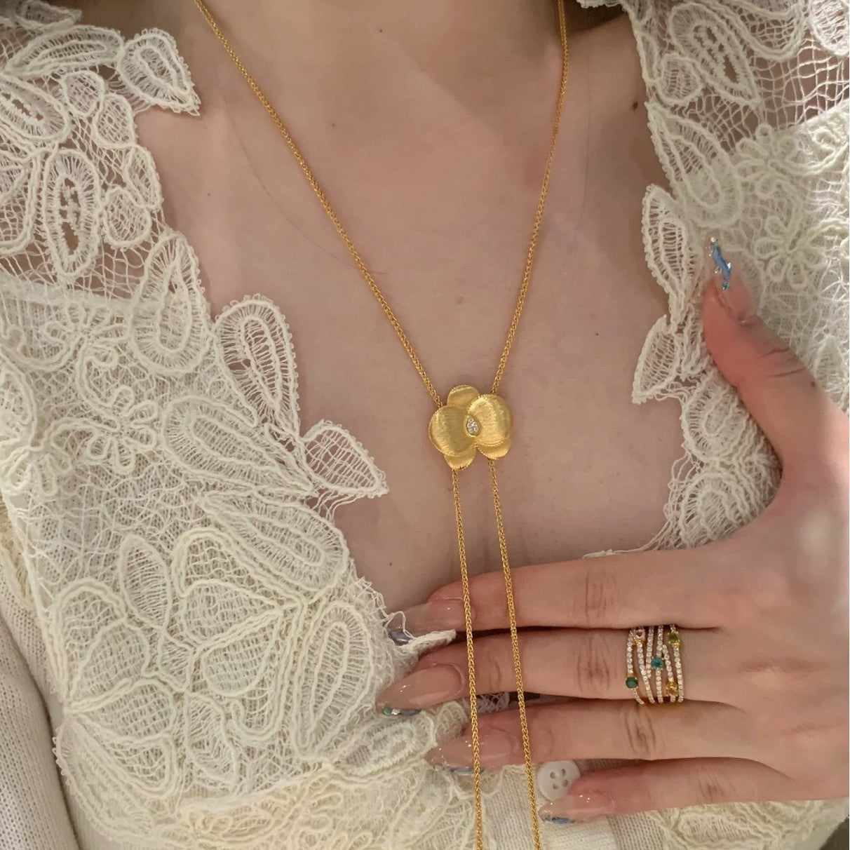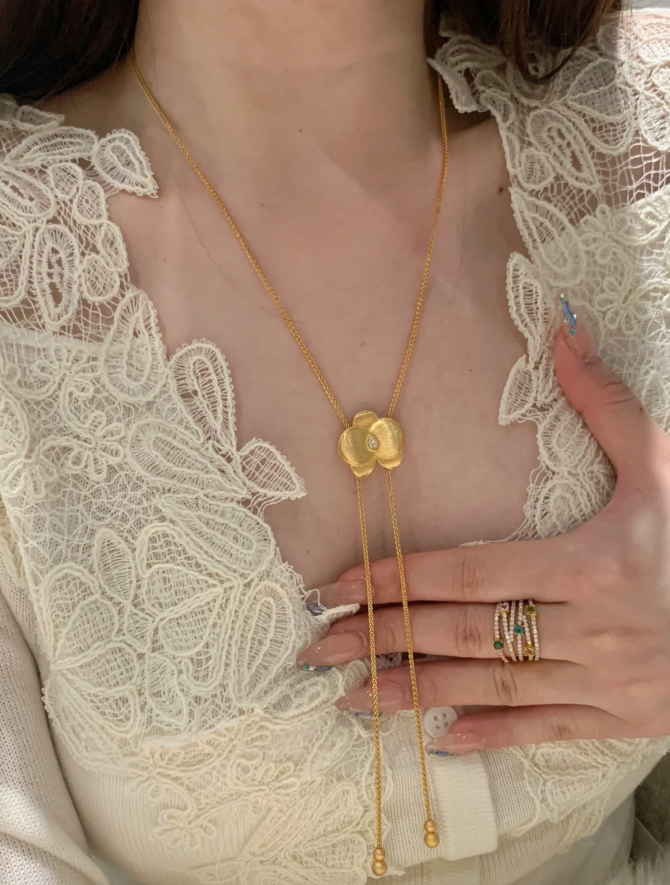 Sterling Silver S925Brushed Craft Butterfly Orchid Necklace Sweater Chain High-End Light Luxury Niche Design Exquisite Collarbone Chain