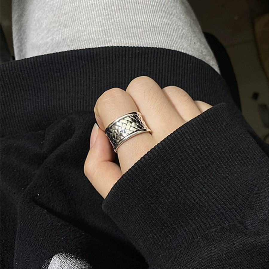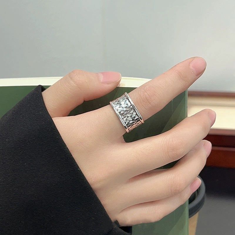Sterling Silver S925 Shiny Braided Wide Ring Vintage Men Women 925 Sterling Silver Fashion Simple Braided Index Finger Ring