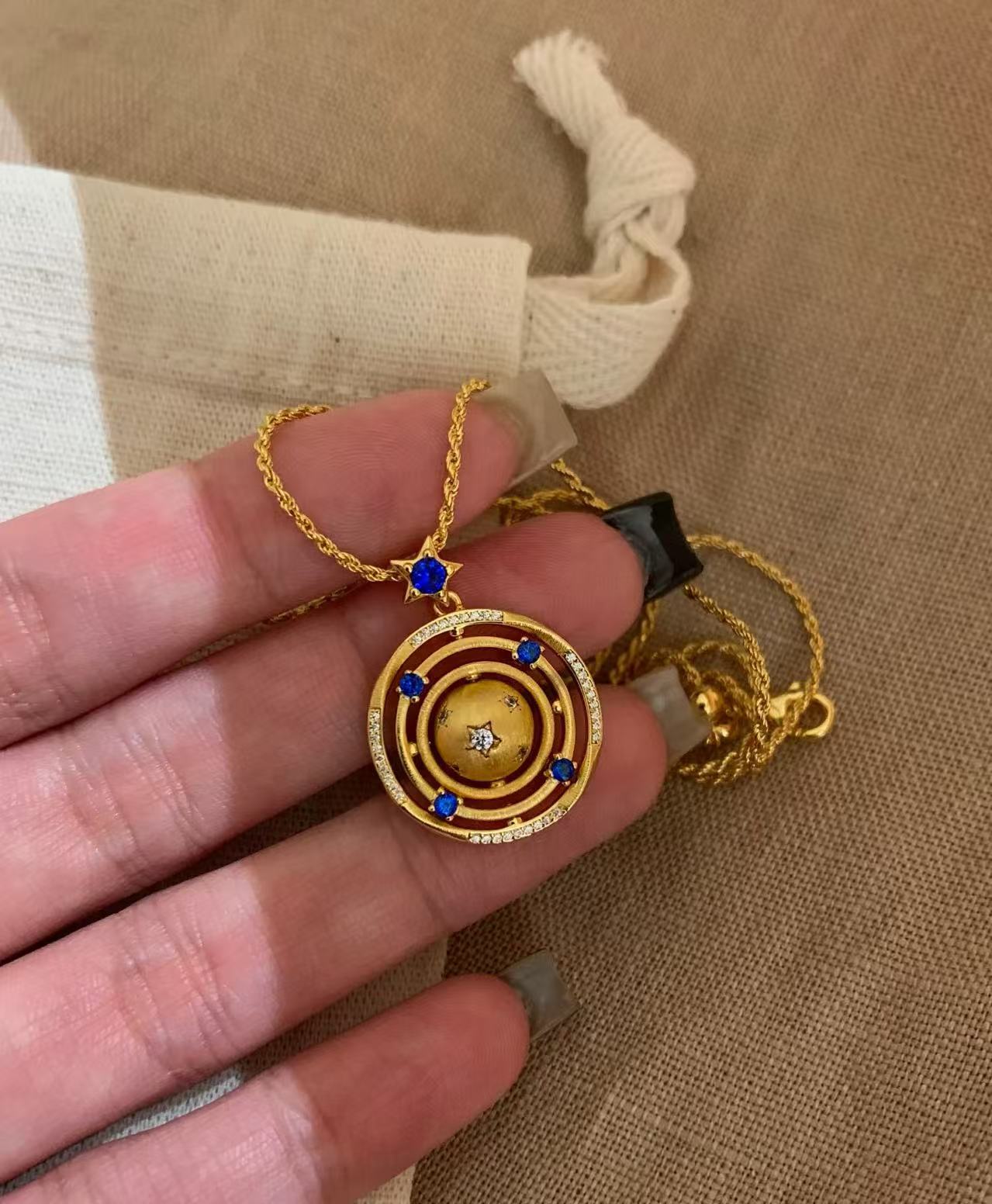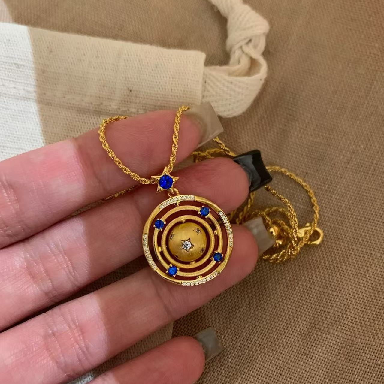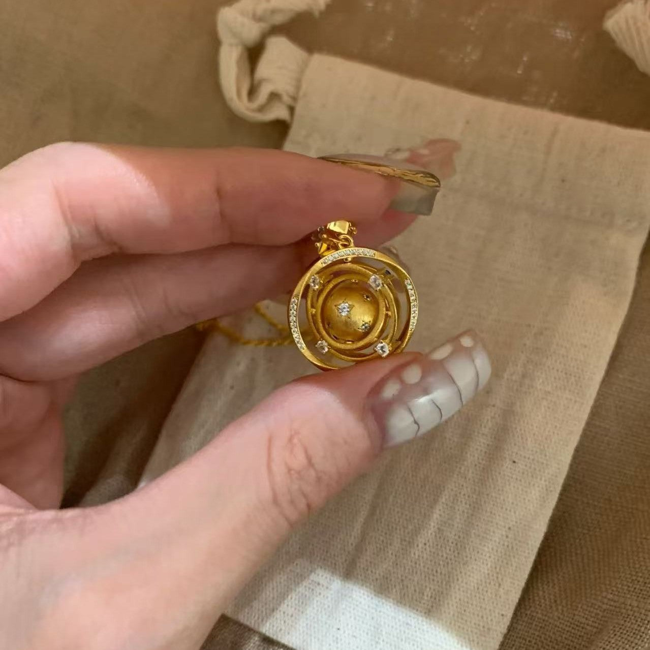 Sterling Silver S925Heavy Craft High-End Brushed Rotating Planet Necklace Niche Design Light Luxury Blue Diamond Star Collarbone Chain