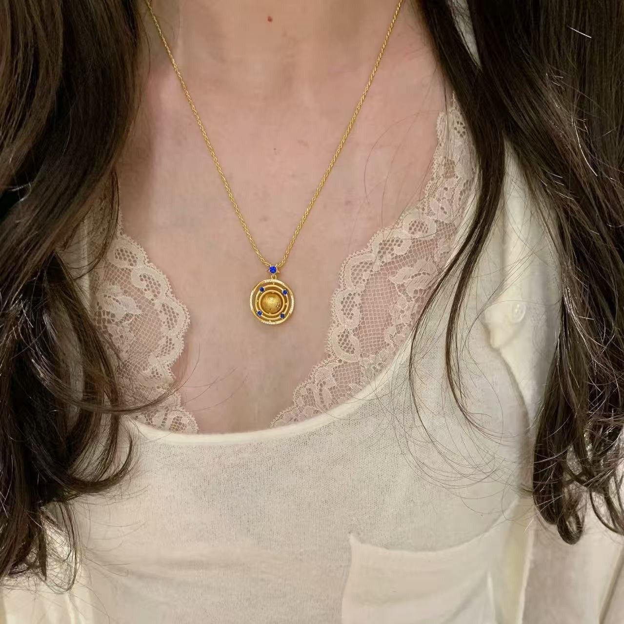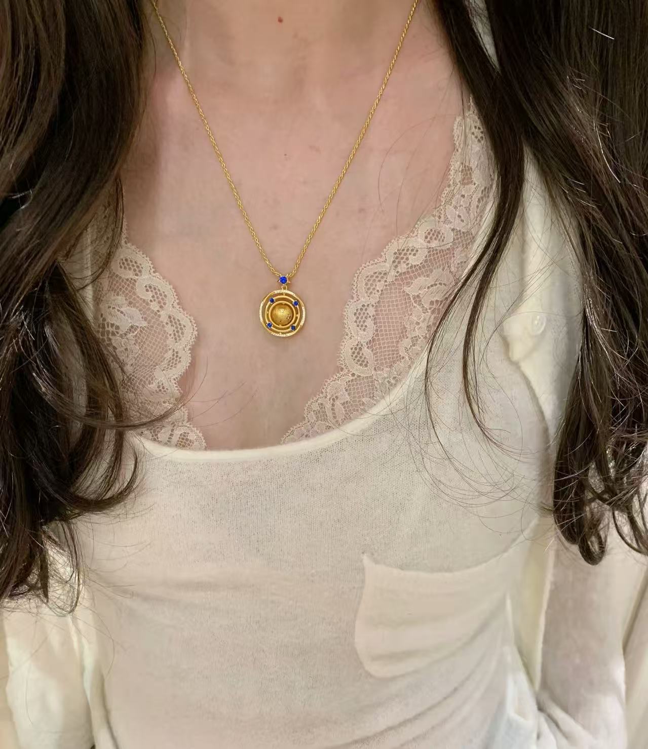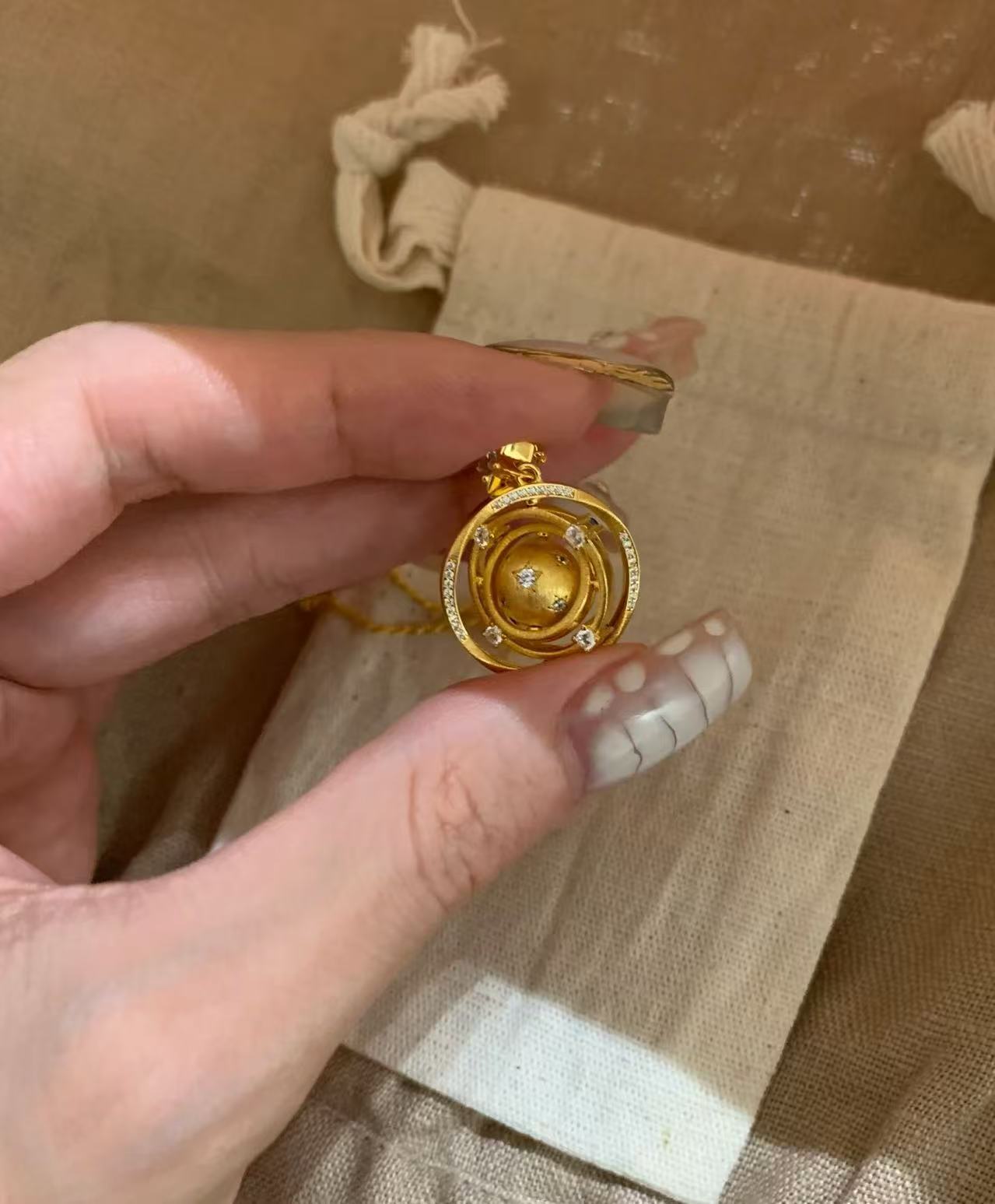Sterling Silver S925Heavy Craft High-End Brushed Rotating Planet Necklace Niche Design Light Luxury Blue Diamond Star Collarbone Chain