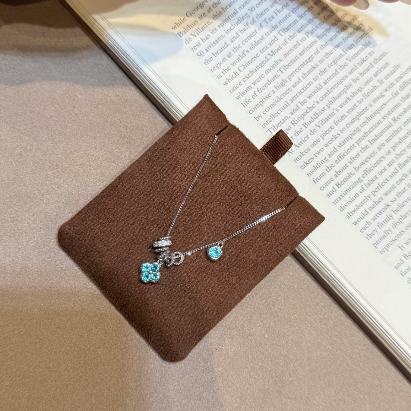 Pure Silver S925 High Carbon Diamond Paraiba Running Ring Four-Leaf Clover Necklace New Hot-Selling Niche Light Luxury High-End