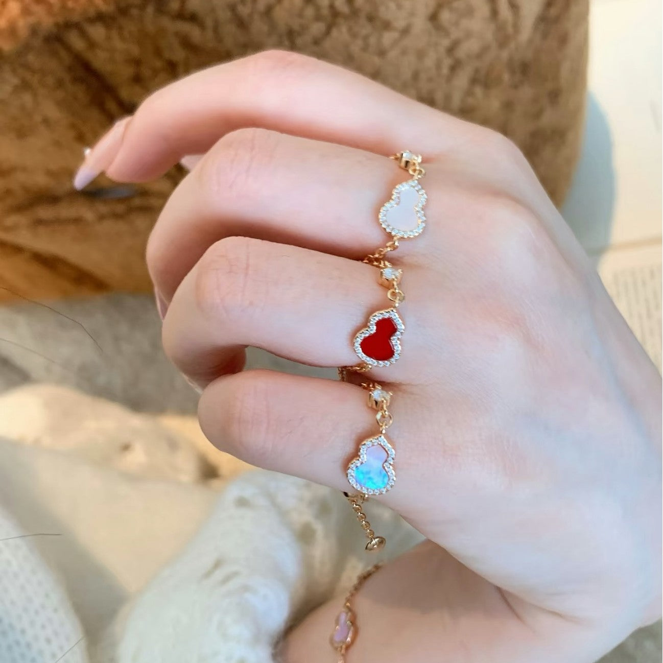 Sterling Silver S925 Natural Pink Shell Red Agate Gourd Ring Adjustable Light Luxury High-End Niche Versatile Exquisite Style